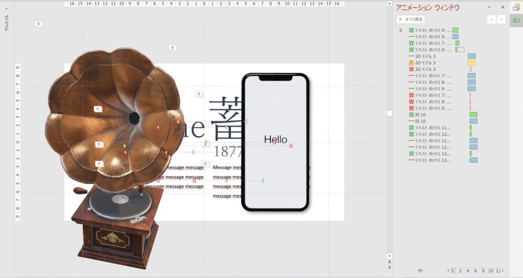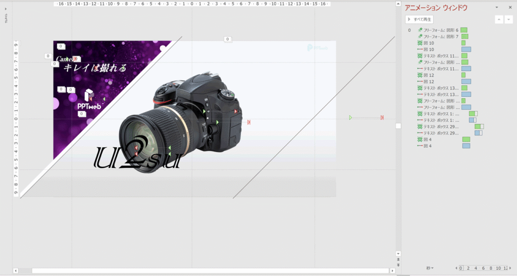 パワーポイントを利用した簡易動画制作https://www.youtube.com/watch?v=ikmZSbM2CvI&t=1s のオープニングの動きを参考にパワーポイントで再現してみたマスク内のオブジェクト