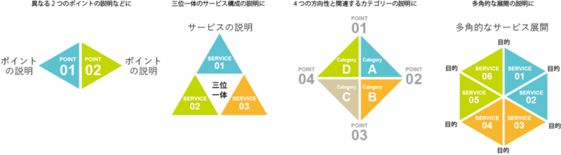 今回は、正三角形を単体で使うときと、複数で使うときの見せ方をご紹介したいと思います。