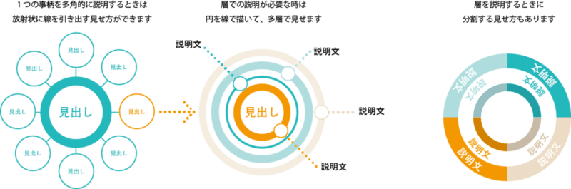 メインの内容について線を太くし、それぞれ色付けをすると視線の誘導がしやすくなります